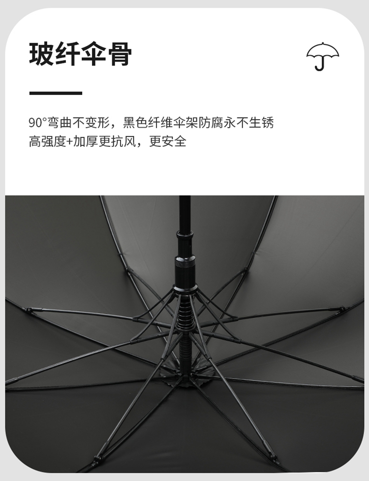 【骨架】:23寸x8k自动加厚铝中棒全纤维伞架