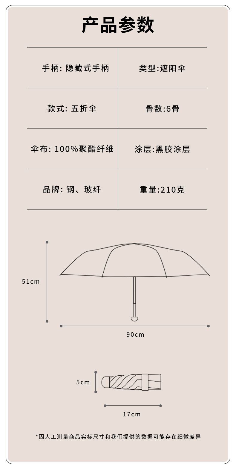 【布料】:190T 黑胶布
