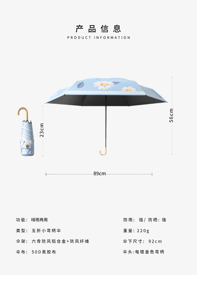 【伞带】:金色平面扣