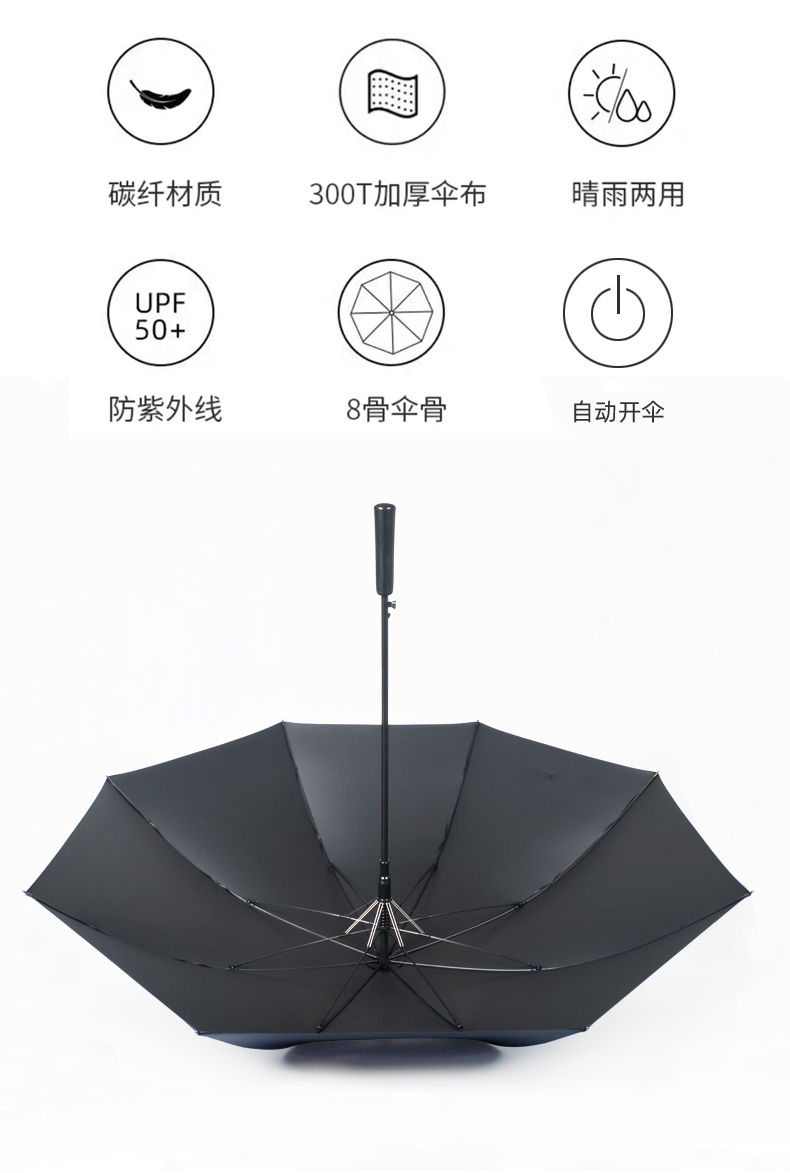 【骨架】:27寸x8kx14厘自动全碳纤桃子黄色视频伞