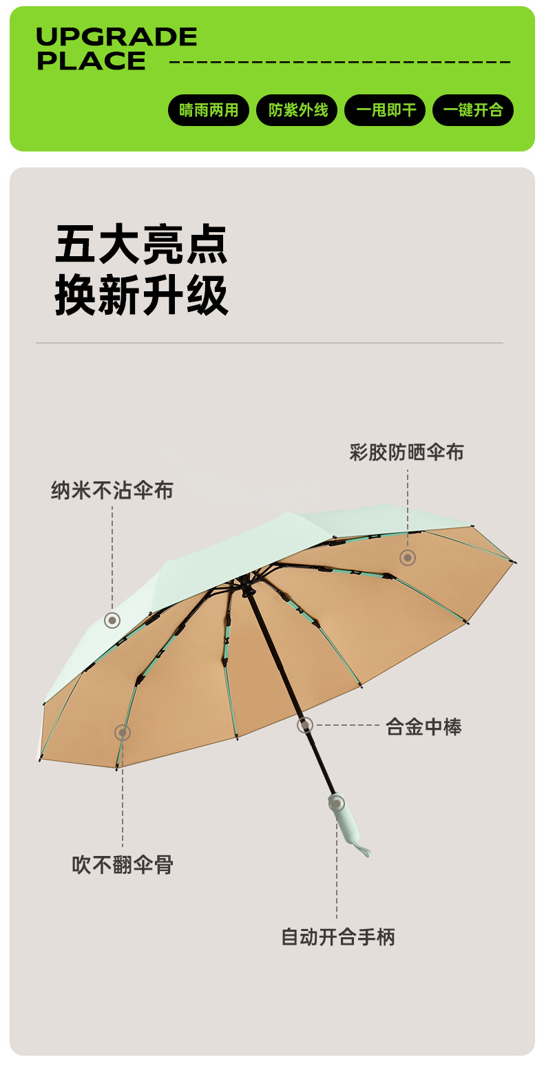 【伞头】:太阳花自动开收塑胶手柄